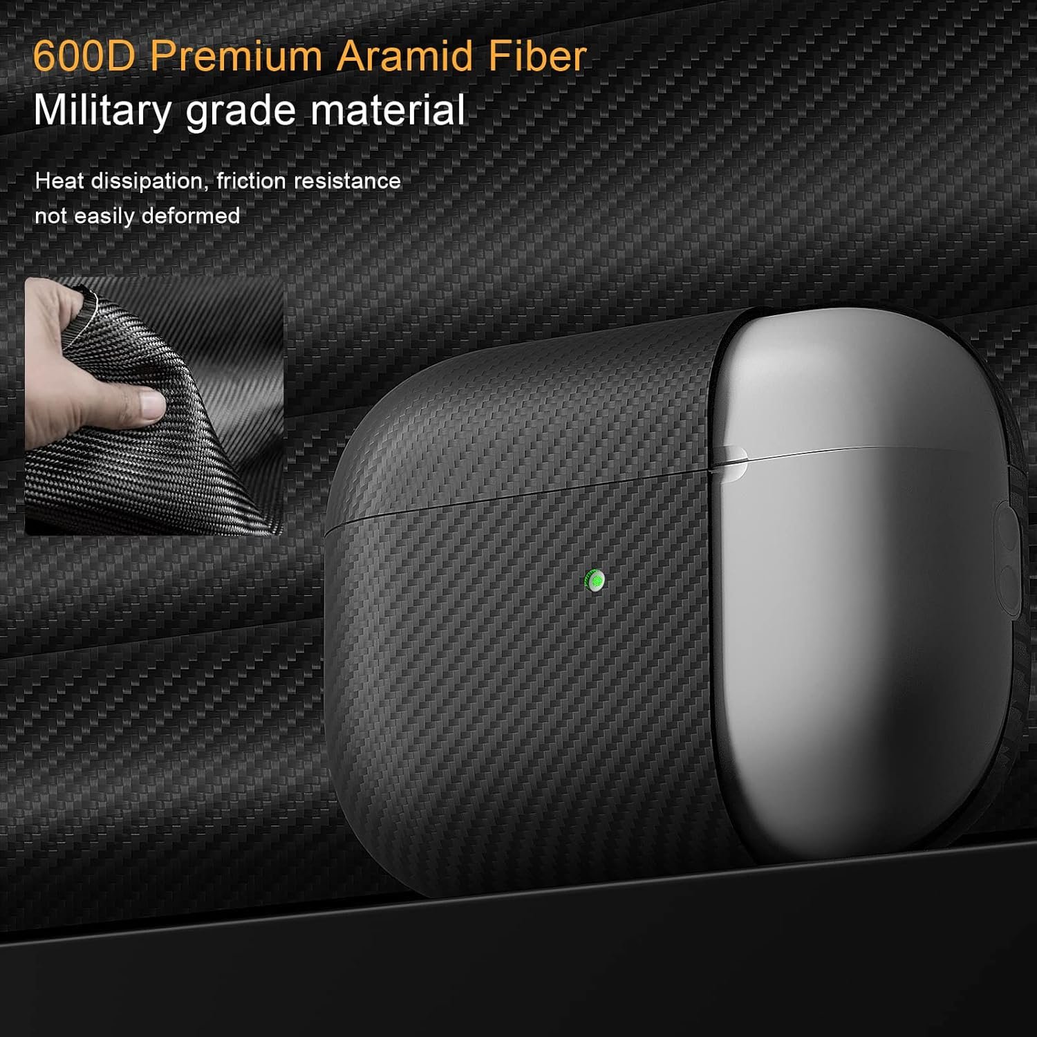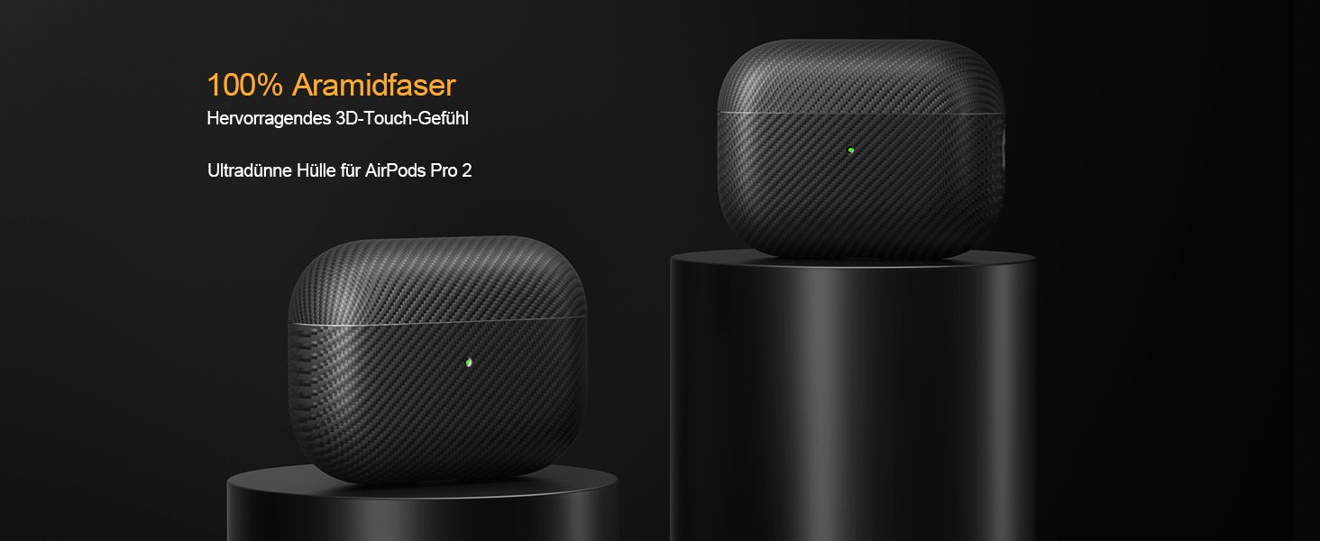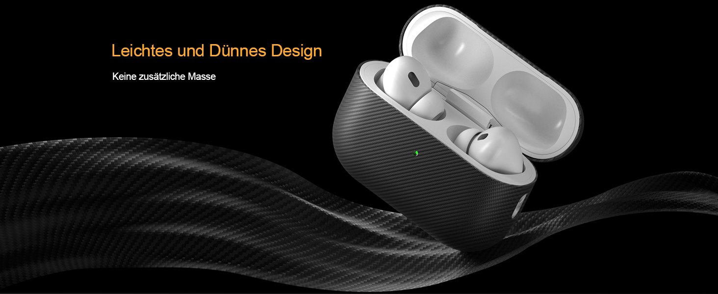 Das Carbon-Gehäuse ist für die AirPods Pro 2. Generation 2022, es ist aus 1500D Aramid-Faser von Dupont, die in der Regel in der Luftfahrt und Militär aufgrund seiner Hitzebeständigkeit, Reibungswiderstand und Korrosionsbeständigkeit verwendet wird. Keine Veränderung nach längerem Gebrauch.