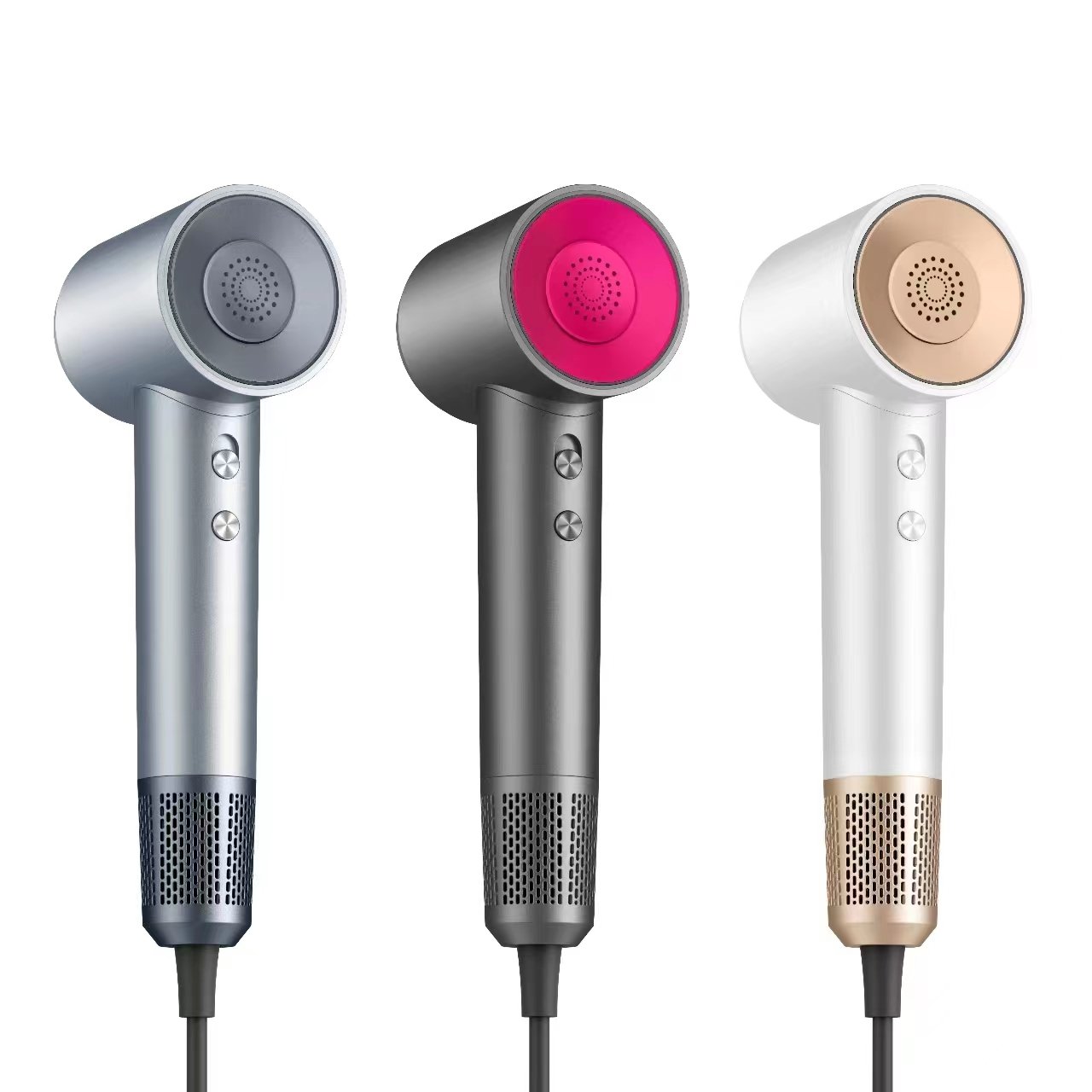 Erhältlich in Silber-Weiß, Tiefschwarz und Ozeanblau. Das eloxierte Gehäuse verleiht dem Haartrockner einen modernen, luxuriösen Look.