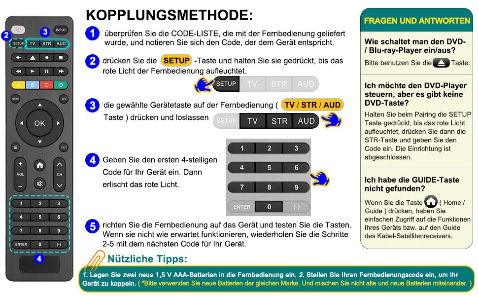 Tasten für Menü, Programmwahl, Videotext u.v.m.