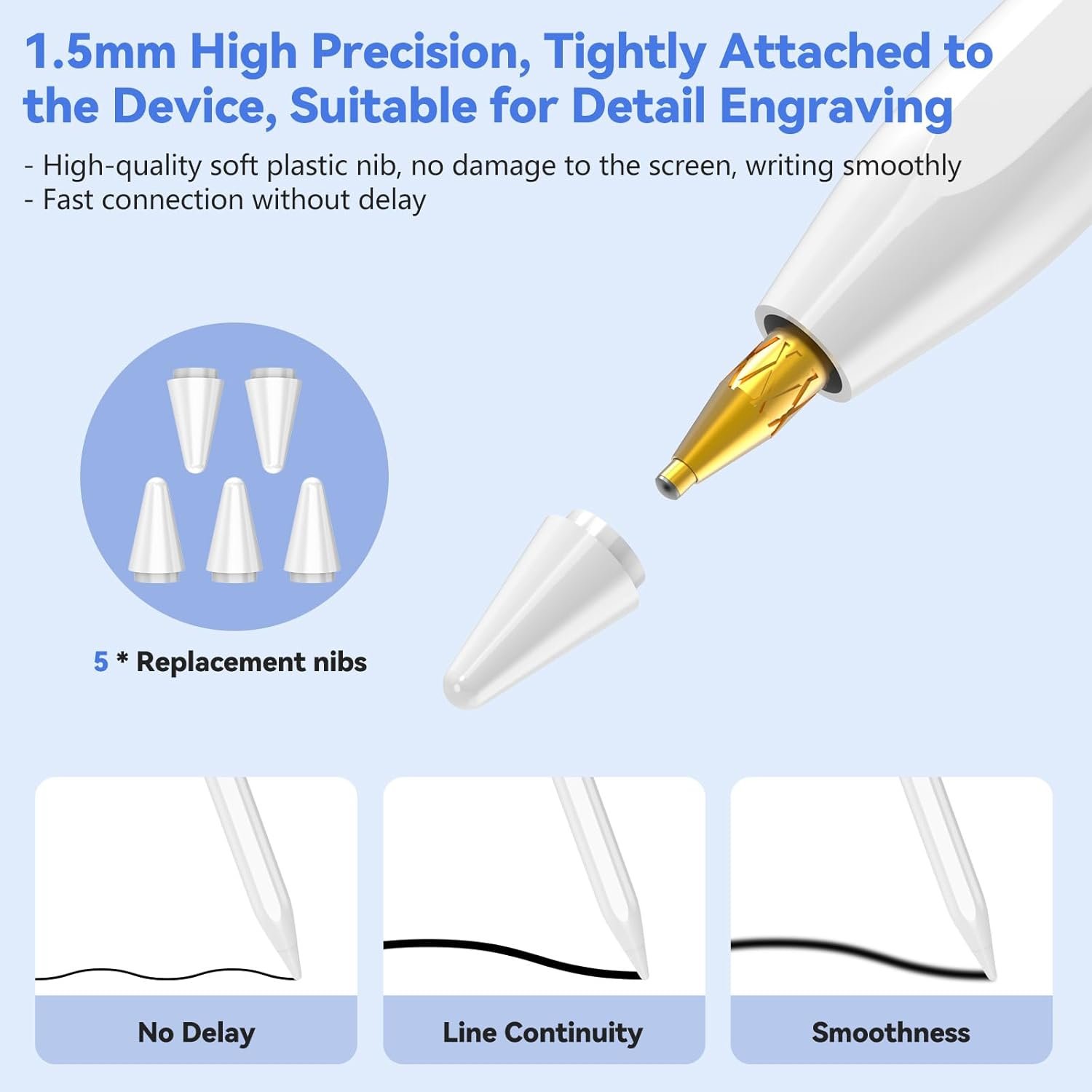Der **Stylus Pen** überzeugt durch seine ultrafeine 1,5 mm POM-Spitze, die ein präzises und gleichmäßiges Schreib- und Zeichenerlebnis bietet. Egal ob für Notizen, Skizzen oder digitale Illustration – jede Bewegung wird exakt und ohne Verzögerung erfasst.
