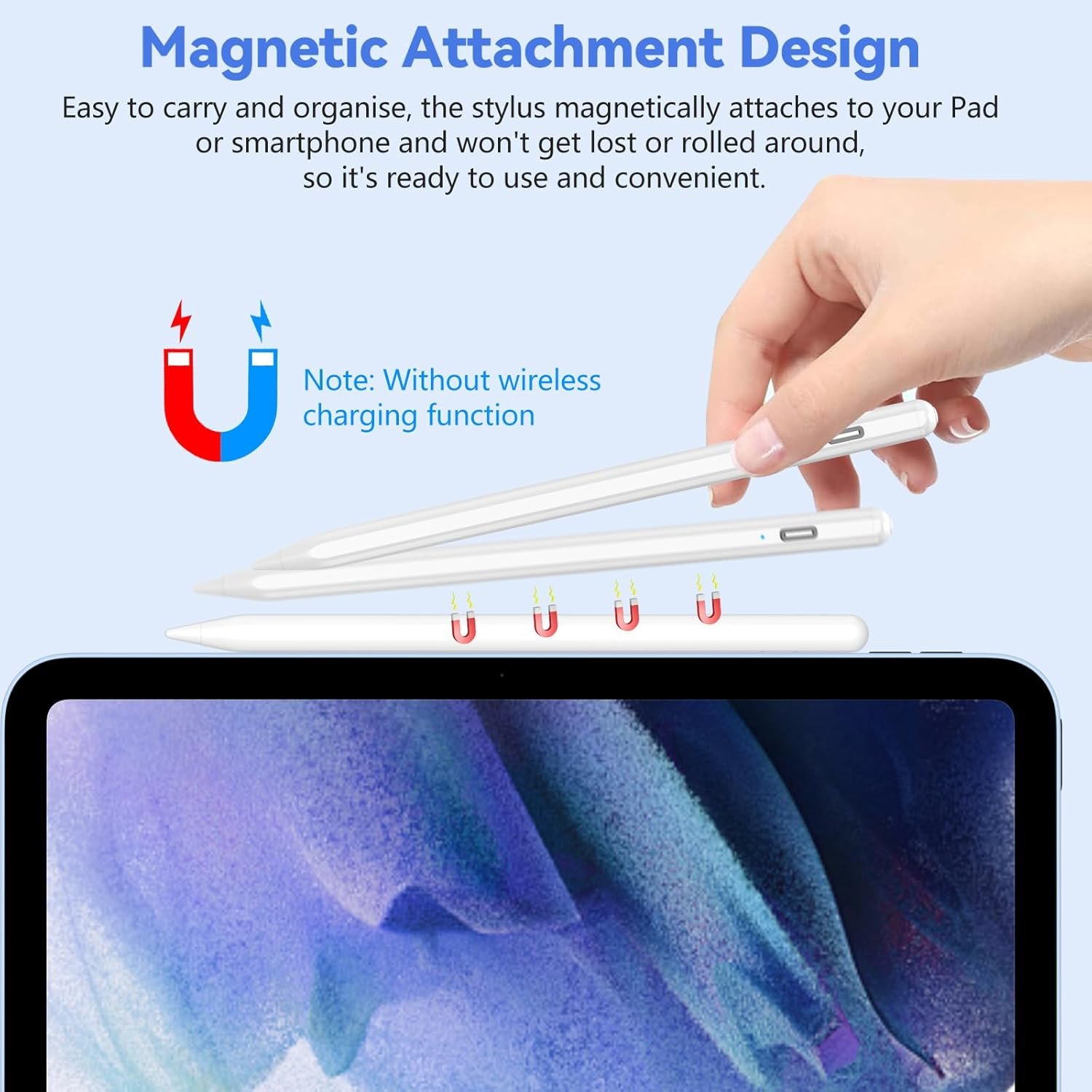 Der Stift verfügt über eine **magnetische Adsorptionsfunktion**, mit der er sicher an kompatiblen Geräten haftet. So bleibt er immer griffbereit und kann nicht versehentlich verloren gehen – perfekt für unterwegs oder den Arbeitsplatz.